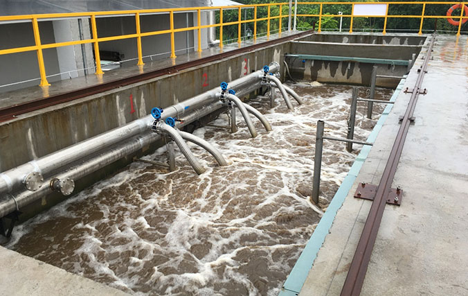 本項目設計規模15000噸/天,分三期實施,一期新建日處理5000噸/天污水處理廠,深度處理工藝MBR系統設計一期處理規模為3000噸/天,污水處理主體工藝采用A2O+MBR,出水排放標準達到《四川省岷江、沱江流域水污染排放標準》(DB51/2311-2016)合格標準。項目選型為水藝SMU-30A產品,設計平均通量為13.35L/m2/h。項目設計2座膜池,每座膜池布置6個膜架,每個膜架52簾SMU-30A,共用膜面積9360平方。項目投運時間為2018年3月。