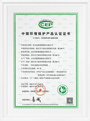 中國環境保護產品認證證書-一體化成套污水處理裝置