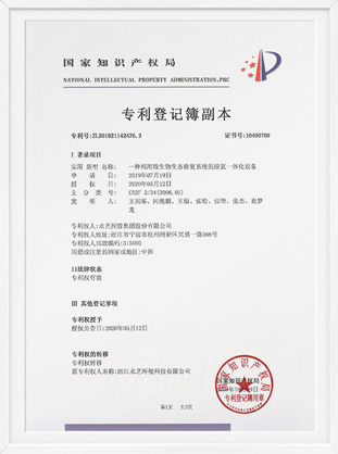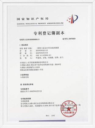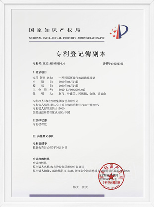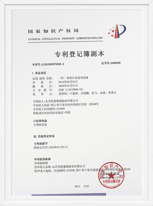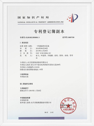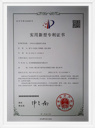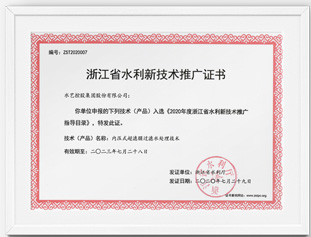 浙江省水利新技術推廣證書-內壓式超濾膜過濾水處理技術