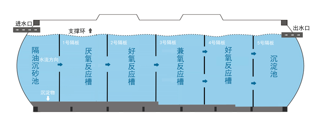 分戶式凈化槽采用多級A/O工藝,能夠有效去除生活污水中的雜物,實(shí)現(xiàn)單戶/多戶的生活污水就地處理,主要針對分散式區(qū)域的污水處理設(shè)計(jì)。采用高度集成化的一體化分散式的多級AO污水處理技術(shù)將厭氧反應(yīng)槽、好氧反應(yīng)槽、兼氧反應(yīng)槽、好氧反應(yīng)槽、沉淀槽等各項(xiàng)功能區(qū)集于一體化設(shè)備內(nèi),應(yīng)用于區(qū)域較分散的生活污水處理。
